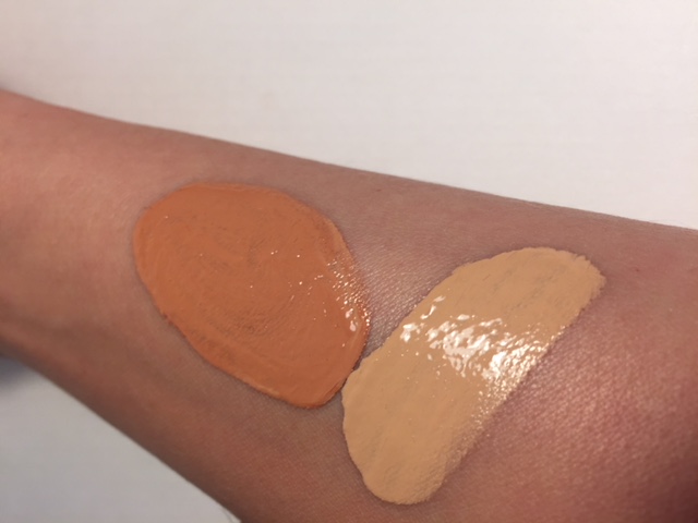 - Right swatch is foundation alone. Left has Warmth mixed in.