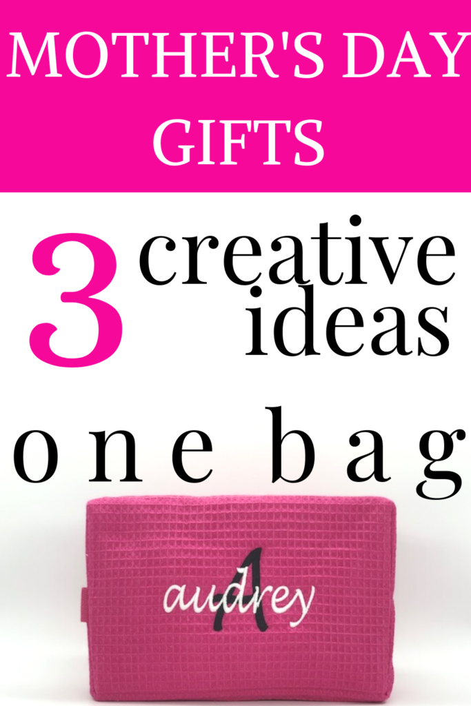 All of the ideas in this post will certainly work as Mother’s Day Gift Basket Ideas, but I’m also throwing out some other ideas. Like one of the cutest gifts I’ve gotten, this useful monogrammed bag.